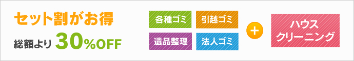 不用品回収・粗大ごみ回収後の掃除も承ります。不用品回収とのセット割引もございますのでお気軽にお問い合わせ下さい。